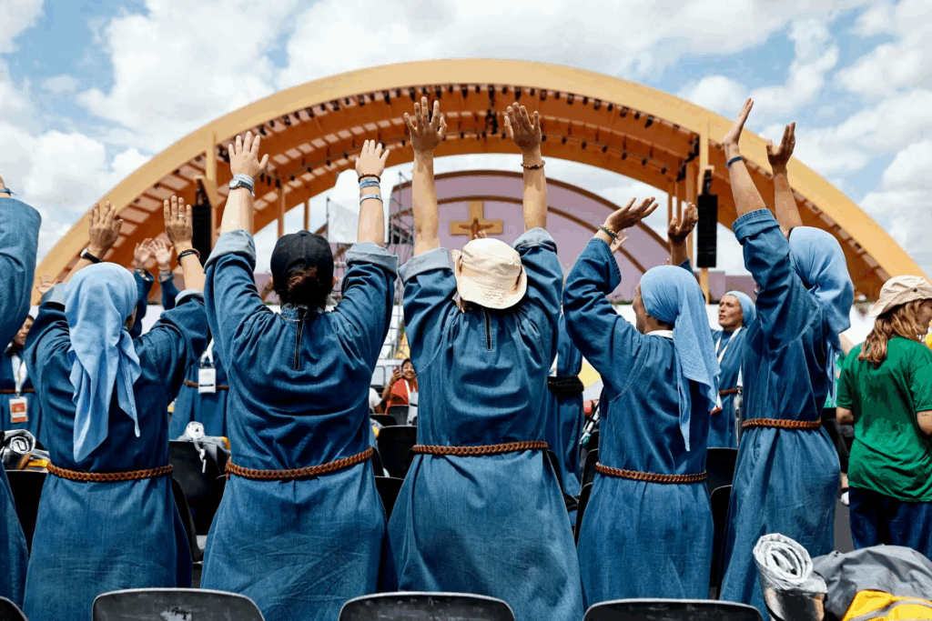 El ambiente entre los jóvenes es de entusiasmo y emoción ante el que muchos describen como el momento más esperado y simbólico del Año Santo, tras días de peregrinación y largas horas de viaje.