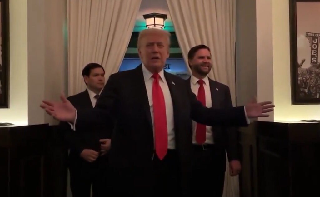 El episodio ocurrió cuando Trump ingresaba al local y saludaba al personal, momento en que un grupo de mujeres con banderas palestinas lo sorprendió al grito de “¡Palestina libre!”.