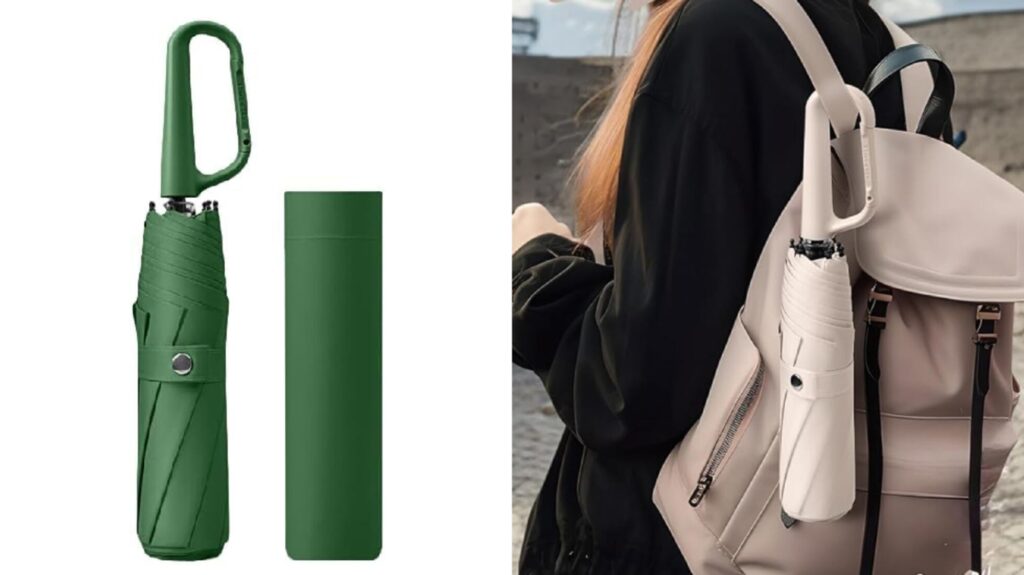 Así es el paraguas con asa en forma de mosquetón que no llevarás en la mano
