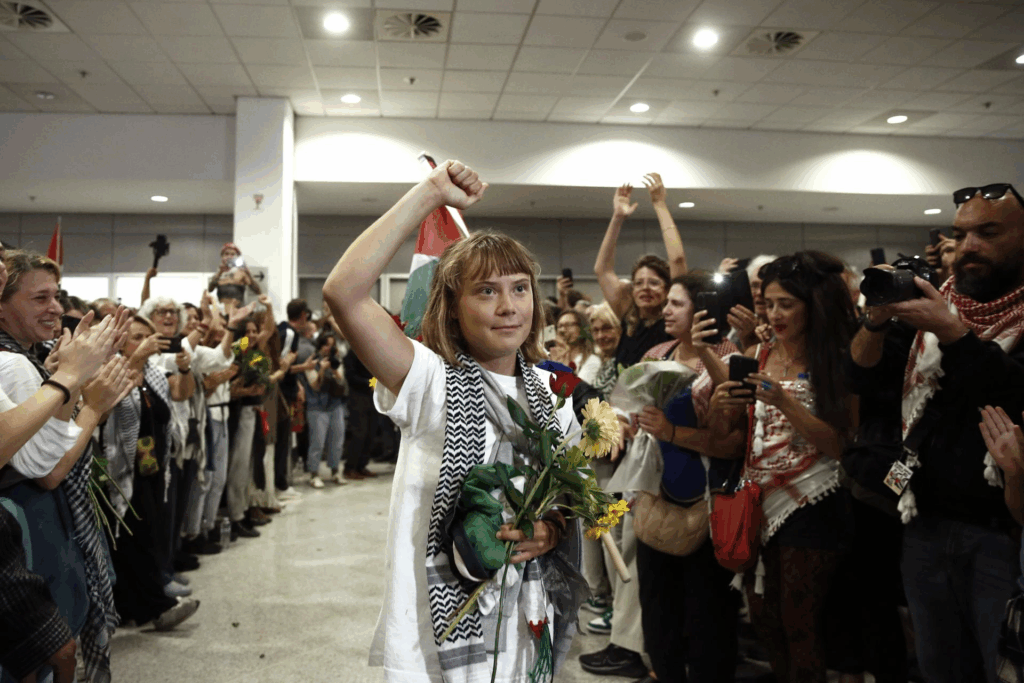 “Podría hablar durante mucho tiempo sobre los malos tratos y abusos que sufrimos durante nuestro encarcelamiento, pero esa no es la historia”, señaló Thunberg ante los medios en el aeropuerto, donde los integrantes de la Flotilla fueron recibidos por cientos de personas con banderas palestinas y pancartas contra el “genocidio”.