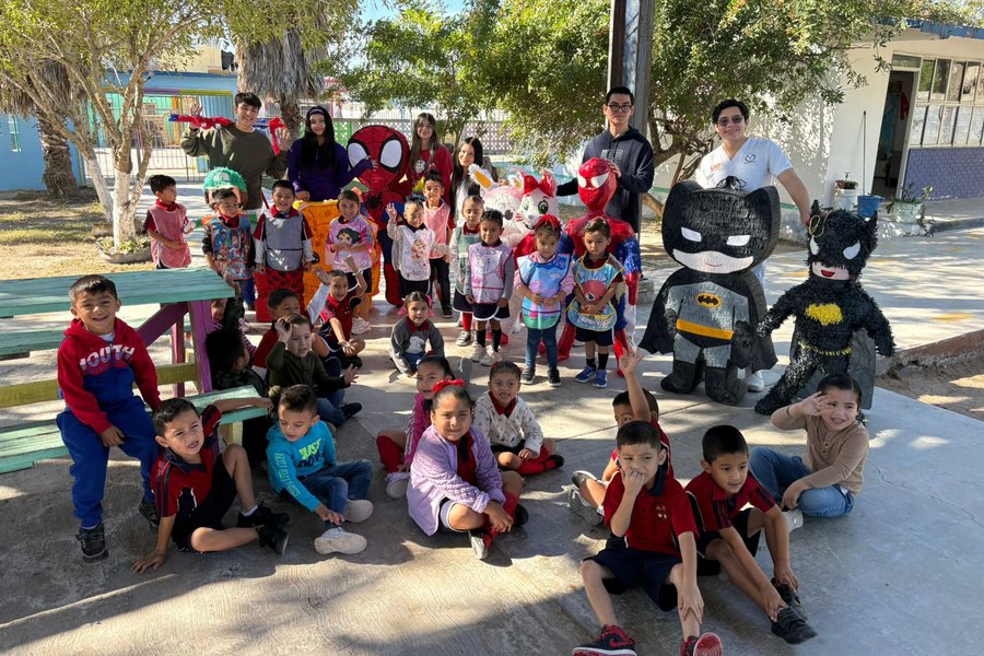 Las actividades siguieron con la donación de piñatas al Jardín de Niños del Ejido La Luz, llevando alegría a la niñez y fortaleciendo los lazos comunitarios. De igual forma, la comunidad estudiantil y docente llevó cuentos, libros de colorear y colores a la Casa Hogar del Niño Matamorense, así como a la Escuela Primaria Miguel García Posada, fomentando la creatividad y el aprendizaje de la niñez.